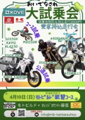 茨城県笠間市のモトビルドさんでKOVE他オフロードモデルの試乗会が行われます。